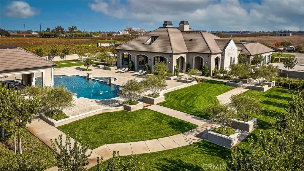 Tucked behind private gates in the heart of Lodi Wine Country, this breathtaking 2-acre estate, built in 2020, spans over 7,100 sq ft of luxurious living space. The main residence & accompanying pool house are enveloped by meticulously landscaped gardens, inviting outdoor terraces, a pristine pool and spa & an intimate fire pit. This estate is the ultimate showcase, perfect for sunset gatherings, year-round entertaining, and grand events. Inside, the expansive living areas are adorned with high-end finishes, featuring 4-bedrooms(3 ensuite), 4-full baths, and 2-half baths. Enjoy soaring 14-foot ceilings, state-of-the-art media room, dedicated office & a chef's kitchen with seamless access to the expansive outdoor living areas. The covered entertaining spaces, resort-style custom pool & outdoor kitchen create a perfect blend of relaxation and entertainment. This estate is designed for multi-generational living, weekend escapes, and grand entertaining, all while offering privacy, space & timeless appeal. For added seclusion, 2 adjacent 2-acre properties are also available. Conveniently located just minutes from downtown Lodi & within easy reach of major airports & the South Lake Tahoe Basin. Discover the exceptional allure of this magnificent estate and make it your own.