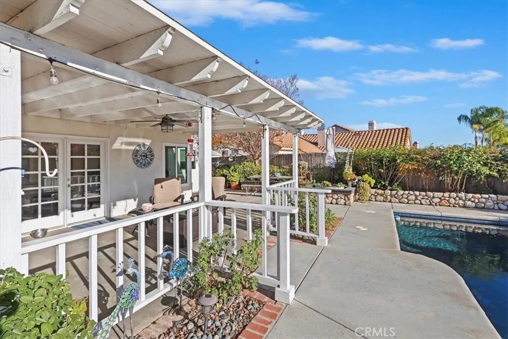 --Beautifully Upgraded Home with Resort-Style Backyard-- Welcome to a home that has been lovingly maintained and thoughtfully upgraded over the years. With a sparkling saltwater pool, newly updated systems, custom craftsmanship throughout, and a serene outdoor retreat, this property offers the perfect blend of comfort, style, and function. Step into a backyard built for relaxation and entertaining. The saltwater Pebble Tec pool (constructed in 2005) features a striking navy-blue finish and was professionally tile-cleaned in August 2024. A newer Pentair WhisperFlow VST pump (2023) ensures efficient, quiet operation. Enjoy California evenings under the covered patio with its ceiling fan and warm market-string lighting, or gather around the custom-built picnic table and seat wall beneath the oversized 11-ft umbrella. A 10x8 shed, installed in 2005, adds extra storage for tools, toys, or outdoor equipment. Inside, the home continues to impress with quality upgrades and custom details. The kitchen features white quartz countertops, a modern sink, vinyl flooring (2016), and a brand-new Bosch dishwasher (Dec. 2024). The family room includes a real wood-burning fireplace, a custom one-of-a-kind mantle, French doors to the patio, and commercial-grade engineered wood flooring. In the living room youll find more thoughtful craftsmanship with custom-built shelving and a window seat, complemented by beautiful drapes. Major exterior upgrades were completed in 20202021, including American Vision (Anlin) double-pane ThermaCoat windows, a new front door, brick porch with Spanish tile, full