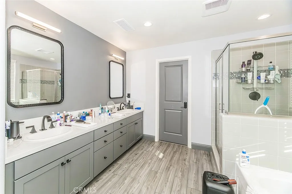 Beautiful Contemporary Home in Clovis Unified and the Loma Vista Lifestyle. Minutes away restaurants, shopping, and all your wants. Built in 2022, this 2,128 sq. ft. modern two-story features 4 spacious bedrooms, 2.5 bathrooms, and custom upgrades throughout. Scratch and water-resistant laminate flooring flows throughout and primary bedroom, while the 3 guest bedrooms offer cozy carpeting. The open-concept kitchen and living area include upgraded light fixtures and fans, a farmhouse sink, gas cooktop, deep walk-in pantry, and a convenient downstairs half bath, perfect for everyday living and entertaining. Upstairs, all four bedrooms are generously sized. The primary suite includes dual sinks, a soaking tub, and a walk-in shower. Guest bedrooms share a well-appointed full bathroom. Step outside to a lush, low-maintenance backyard with a covered patio for year-round enjoyment. Additional highlights include dual pane windows, tile roof, and 23 PPA solar panels with two backup batteries, and EV charger. Offering excellent energy efficiency and convenience. Sharp, contemporary, and located in a desirable neighborhood, this Clovis gem is a must-see!