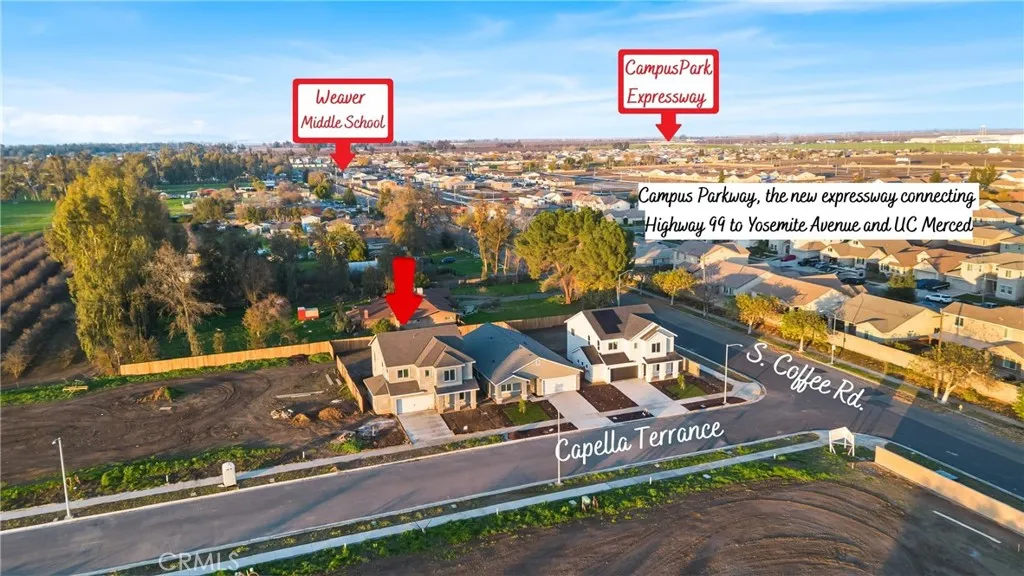NEW CONSTRUCTION Capella Terrace | Southeast Merced Built with an emphasis on quality craftsmanship and thoughtful design, this new construction home offers 4 bedrooms, 2.5 bathrooms, 9-foot ceilings, and a huge open floor plan that feels both elevated and functional. The layout is intentionally designed to enhance everyday living, with a finished garage offering extra roomideal for a home gym, storage, or workspacealong with storage cabinets throughout the home and dual closets in the primary suite. The upstairs laundry room with sink adds convenience where it matters most. Additional highlights include soft-closing cabinets, premium-quality finished garage walls, very plush carpeting, a whole house fan designed to help circulate air during warm Central Valley conditions, and an all-electric design built to current energy-efficiency standards and paired with solar. The primary bathroom features a custom tile shower, while double sinks in the bathrooms add both style and functionality. Enjoy seamless indoor-outdoor living with a covered patio. No HOA. Conveniently located near Campus Parkway and Hwy 99.