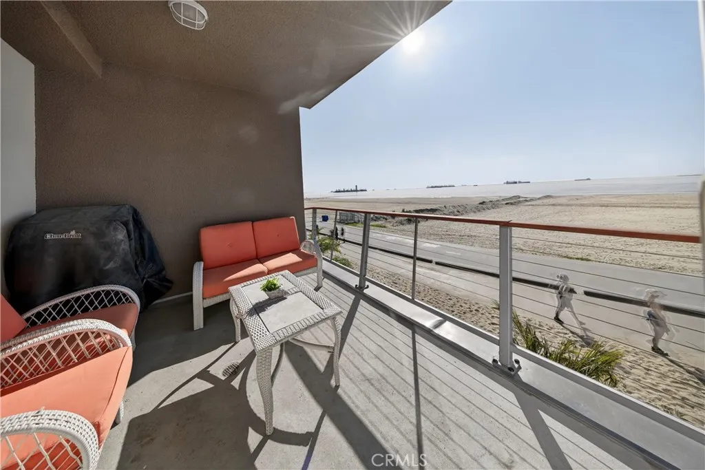 Exceptional direct-on-the-sand residence offering unobstructed ocean and coastline views and an elevated coastal lifestyle. Contemporary tile flooring flows throughout the main living areas, complemented by clean architectural lines, recessed lighting, and refined finishes. The guest bedroom and dedicated office feature custom window treatments, modern ceiling fans, and built-in cabinetry, including a custom workspace ideal for todays work-from-home needs. The guest bath showcases custom tile flooring extending into the shower, classic subway tile, refined fixtures, and a built-in niche. Shaker-style custom cabinetry is featured throughout the home. The kitchen offers stainless steel appliances, a five-burner stove, farmhouse-style stainless sink, and custom tile backsplashideal for everyday living and entertaining. The living room is highlighted by three floor-to-ceiling windows framing breathtaking ocean views. The primary suite offers sweeping Pacific Ocean views, plush low-pile carpet, custom lighting, a spa-inspired bath with walk-in shower, bench, niche, customized walk-in closet, and additional built-in storage. Residents enjoy resort-style amenities including a rooftop pool, jacuzzi, BBQ area, fireplace, and panoramic sunset views, along with a community room for private events. Building amenities include a full-time Front Desk Manager during business hours, a daytime security committee, and an on-site security guard from 11:00 PM to 7:00 AM.