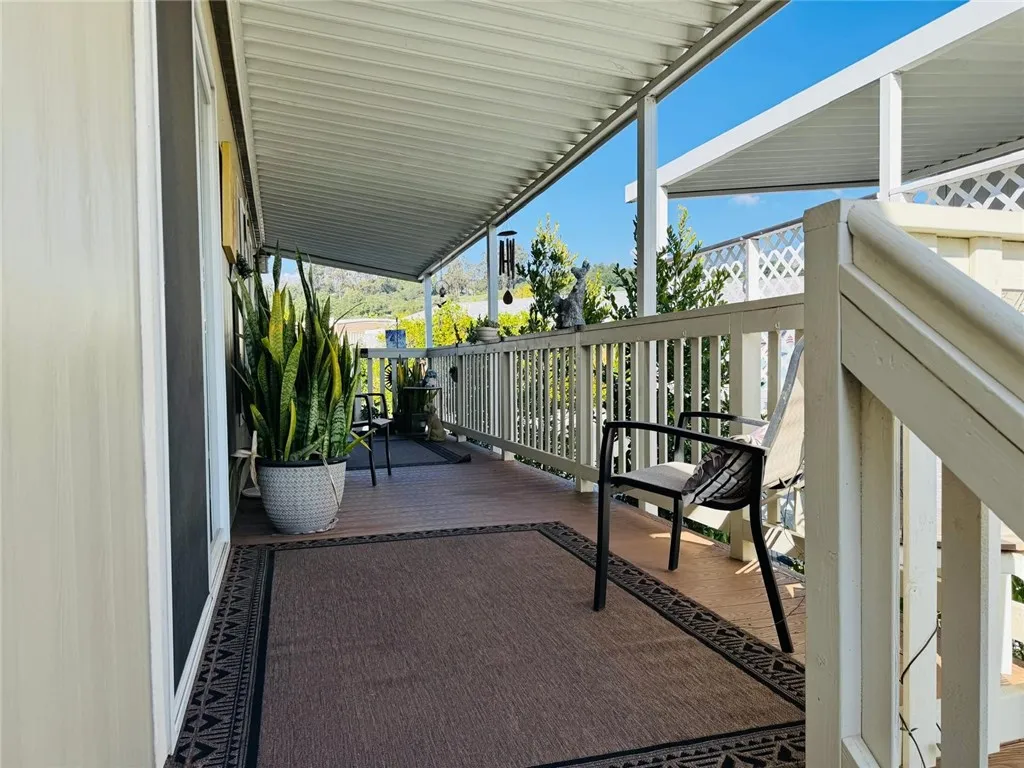 Welcome to Mira Valle Mobile Home Community, a peaceful, private, and highly sought-after community nestled in the heart of picturesque Ojai. This serene, culturally rich enclave celebrates artistic value with its welcoming atmosphere, beautiful mountain surroundings, & proximity to Ojai's renowned creative sceneperfect for those who appreciate a relaxed, inspiring lifestyle. This gorgeous contemporary home features wrap-around front windows and a large deck, perfectly positioned to capture breathtaking mountain views and the valley's natural beauty. Inside, the spacious open-concept floor plan is bathed in natural light, highlighted by cathedral ceilings with crown molding, clerestory double-pane windows, and skylight solar tubes that enhance the bright, airy feel. The well-appointed kitchen is both functional and stylish, boasting Corian countertops, stainless steel appliances, a double gas oven range, dishwasher, double-door refrigerator, and garbage disposal. Year-round comfort is assured with central air conditioning and heating, plus cordless ceiling fans in every room. The large primary bedroom includes a private rear entrance opening to a spacious back deckideal for quiet relaxation or entertaining while overlooking stunning mountain vistas. A dedicated laundry room with washer & dryer adds everyday convenience. Additional highlights include a handicap-accessible automatic aluminum side lift with an attached aluminum deck and stairs, an easy-access carport accommodating two vehicles (or an SUV), guest parking conveniently located directly in front, a storage shed, e