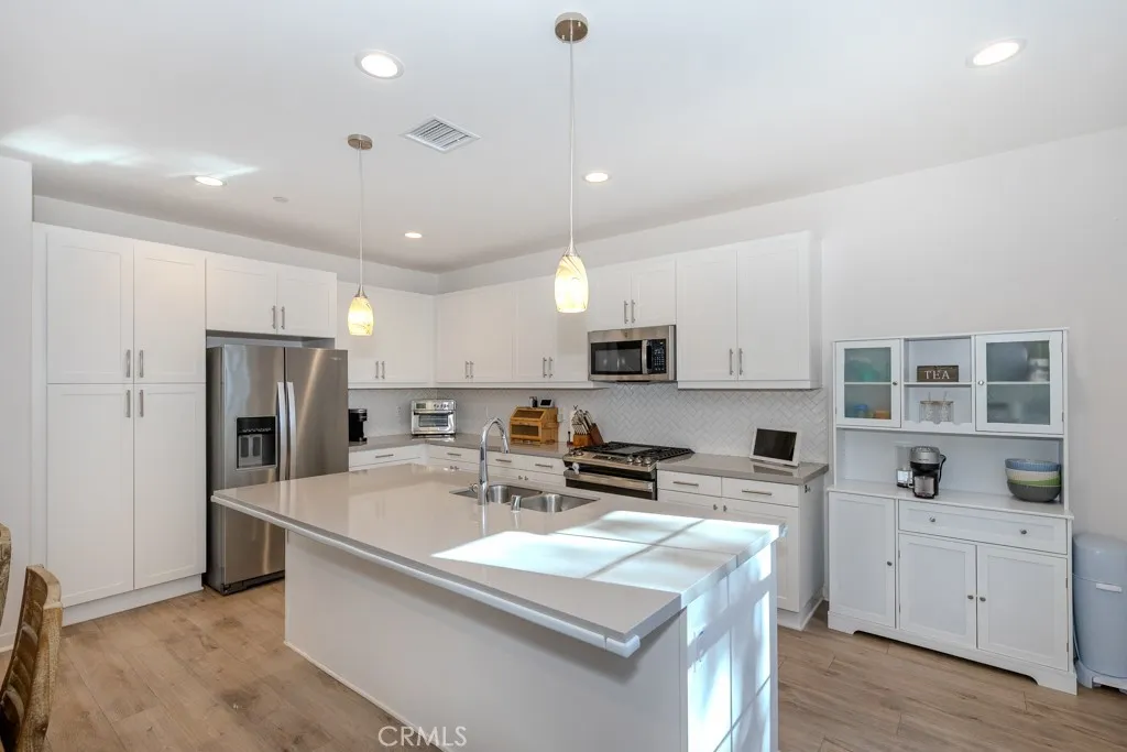 Live the Southern California lifestyle in this newer construction home in a gated community in North Fontana featuring fully paid solar panels, resort-style amenities, and direct access to outdoor recreation. Built in 2022, this spacious 4 bedroom, 3 bathroom home with loft offers approximately 2,290 square feet of modern open-concept living. The designer kitchen showcases quartz countertops, large center prep space, and abundant cabinetry, flowing seamlessly into the main living and dining areas ideal for entertaining and everyday comfort. A downstairs bedroom and full bathroom provide flexibility for multi-generational living, guests, or a private home office. Enjoy an active lifestyle with the Pacific Electric Bike Trail just behind the home, offering miles of paved walking and cycling paths with scenic mountain views. Residents also enjoy community pool, spa, clubhouse, park, BBQ areas, and secure gated entry, with convenient proximity to an exit gate for easy daily commuting. Upstairs features a versatile loft / bonus room, convenient upstairs laundry, and a spacious primary suite with dual sinks and modern finishes. Ideally located near Victoria Gardens shopping and dining, within the highly desirable Etiwanda School District, and offering easy access to the 15 Freeway for commuting to Rancho Cucamonga, Ontario, Las Vegas, Mountain High Ski Resort, Temecula Wine Country, and San Diego. A rare opportunity to own a solar home in a master-planned community near trails, parks, shopping, and top schools combining lifestyle, location, and modern design.