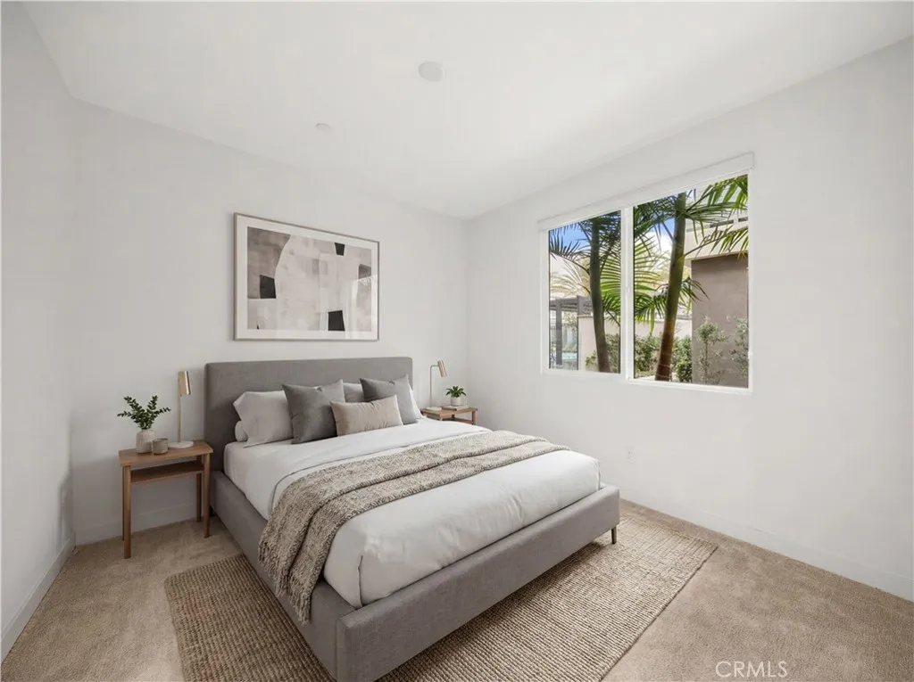 This refined three-level residence showcases a thoughtfully designed layout that blends modern comfort, natural light, and functional elegance, complete with an attached two-car garage. The first level features a private bedroom with a full bathroom and a walk-in closet, offering a versatile space ideal for guests, extended living arrangements, or a dedicated office retreat. Direct interior access from the garage adds everyday convenience while maintaining privacy and efficiency. The second level serves as the heart of the home and is highlighted by expansive windows that fill the space with abundant natural light, creating a bright and inviting atmosphere throughout. The living room flows seamlessly into the kitchen, offering an open and cohesive design well suited for both daily living and entertaining. The kitchen is appointed with stainless steel appliances, abundant cabinetry, and a spacious walk-in pantry, combining style with exceptional storage. An adjacent balcony extends the living space outdoors and overlooks the community pool, providing a relaxing setting for morning coffee or evening unwinding. The third level offers two additional bedrooms and two full bathrooms, including a well-appointed primary suite designed for comfort and functionality. The primary bathroom features dual sinks and generous counter space, creating a refined daily routine. Both bedrooms are enhanced by large windows that allow abundant natural light, while the primary bedroom also enjoys views of the community pool. A built-in study desk area provides a dedicated workspace, and the conven