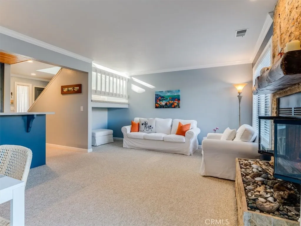 This peaceful coastal retreat offers the lifestyle youve been waiting for, where mornings begin with sunrises over rolling hills from your private back deck and evenings end with glowing ocean sunsets viewed from the spacious primary bedroom suite. Located just a short walk from the beach, the home enjoys a rare natural setting, with the Hearst Ranchprotected by a permanent conservation easementas its eastern neighbor and the occasional zebra wandering by. The three-bedroom home features a generous primary suite with high ceilings, while the living and dining rooms are anchored by a beautiful stone fireplace with a natural wood mantel, creating a warm and inviting space for reading, relaxing, or entertaining, all enhanced by soaring ceilings. Move-in ready and meticulously maintained, the home is sparkling clean and finished in a soothing coastal color palette throughout, with crown molding, Berber carpet, an updated kitchen, dual-pane windows, and a new furnace. Recent upgrades include new up-down shades in the primary suite, new blackout up-down shades in the eastern bedrooms, a new Speed Queen washer and gas dryer, and a garage with newly built shelving. Blooming roses grace both the front and back gardens, complemented by drip irrigation in the front garden. The entire complex has been freshly painted and features attractive pavers, upgraded garage lighting, and well-maintained landscaping, all supported by low HOA fees and a well-functioning association. Whether as a holiday getaway, family home, or retirement retreat, this property offers a truly desirable location an