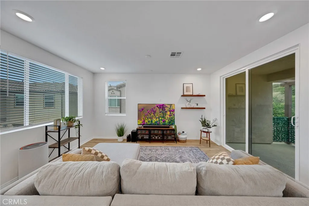 Welcome to The Retreat in Fontana, featuring a well-appointed 1,183 sq ft home with modern upgrades and a functional layout. Upgraded flooring runs throughout the open living and dining areas, which flow seamlessly into the kitchenideal for everyday living and entertaining. Large dual-pane windows and recessed lighting create a bright, inviting atmosphere. Both bedrooms are thoughtfully positioned for added privacy. The spacious primary suite includes a walk-in closet and an en-suite bathroom with dual sinks and a walk-in shower. A secondary bedroom and full bathroom provide flexibility for guests or a home office. Additional highlights include in-unit laundry and a private covered balcony, perfect for relaxing outdoors. Located within the gated Retreat community and the highly desired Etiwanda School District, residents enjoy resort-style amenities including a pool, club house, playground, and beautifully maintained grounds. Energy-efficient features such as solar panels and a tankless water heater help reduce utility costs. Conveniently close to shopping, dining, parks, and major freeways, this move-in-ready home offers both comfort and convenience.