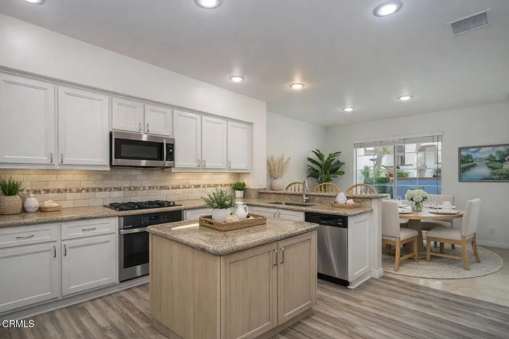 Welcome to Palm Colony, one of Camarillo's most desirable gated communities offering resort-style amenities and a vibrant lifestyle. This beautifully positioned corner-unit condominium features 3 bedrooms, 3 bathrooms, and approximately 1,860 sq ft of thoughtfully designed living space. Freshly painted and filled with natural light, the home offers a warm and inviting atmosphere throughout.The flexible floor plan includes a main-level bedroom or office with a full bathroom, ideal for guests, extended family, or a private workspace. The updated kitchen showcases granite countertops and custom cabinetry, opening seamlessly to the dining area and spacious living room with direct access to a private side patio--perfect for relaxing evenings or weekend barbecues (patio furniture and BBQ grill included).Upstairs, both bedrooms are private primary suites with en-suite bathrooms, offering comfort and privacy. The main suite features a cozy fireplace and walk-in closet, creating a peaceful retreat at the end of the day. A dedicated indoor laundry room adds everyday convenience.Additional highlights include a direct-access two-car garage, ample guest parking, gated entry, and beautifully maintained greenbelts throughout the community.Palm Colony residents enjoy resort-style amenities including a pool, spa, tennis courts, racquetball, fitness center, and RV/boat parking--perfect for those who enjoy an active lifestyle. Ideally located near the Camarillo Premium Outlets, dining, shopping, and convenient access to the 101 Freeway.Some photos have been virtually staged to illustrate the