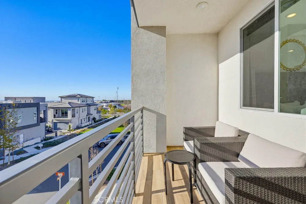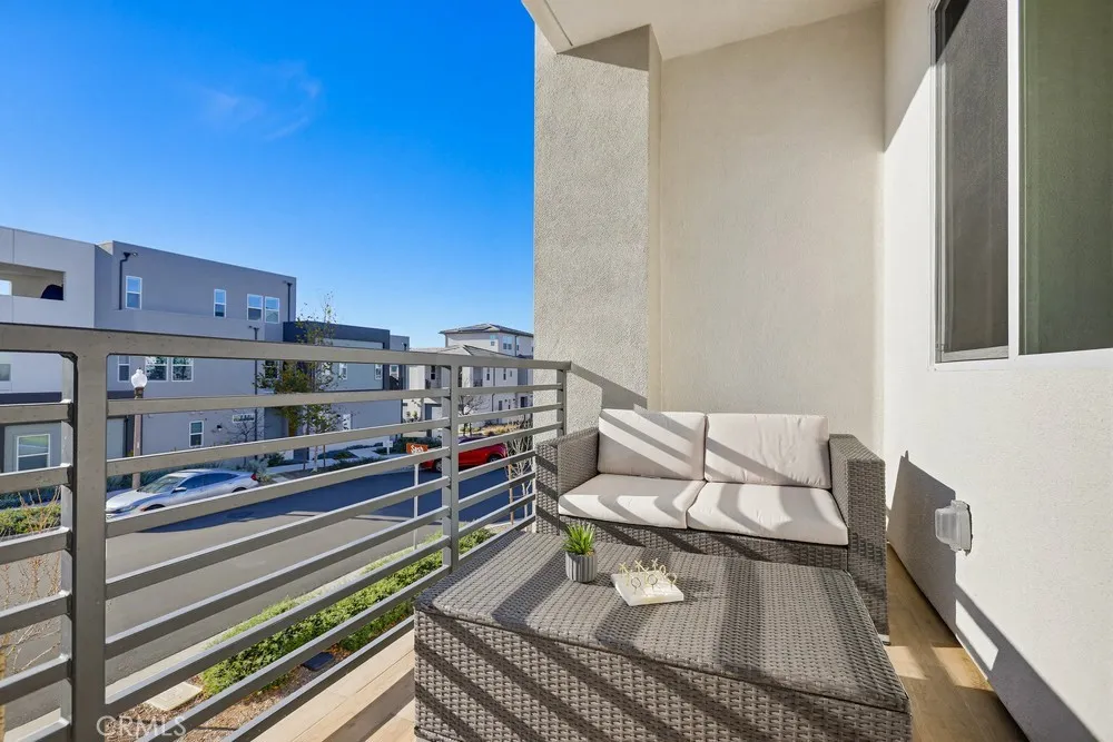 MOTIVATED SELLERS!!! 2 BEDROOM + OFFICE FLEX SPACE in a prime location!!! Located within Irvines Great Park community, this contemporary three-level home offers a flexible layout and a clean, modern aesthetic throughout. Updated flooring spans all levels and outdoor space, creating a cohesive and polished feel. Part of the new desirable Mulberry Collection in Solis Park, the property is only steps away from Portola High school and Solis K-8 school. The first level features a versatile entry-level flex space ideal for a home office, den, or bonus room, along with access to a patio. This level also includes a dedicated storage room and a side-by-side two-car garage with additional storage and an EV charger. The second level serves as the main living area, featuring an open-concept kitchen, dining, and living space enhanced by recessed lighting and updated flooring. The kitchen is finished with white shaker cabinetry, stone countertops, and a large island. A balcony extends the living space outdoors, and a convenient powder bathroom completes this level. On the third floor are two bedrooms, each with its own ensuite upgraded bathroom. One bedroom includes a walk-in closet, while the primary suite features a spacious walk-in closet, dual-sink vanity, updated finishes, and access to a private balcony. The double stack laundry is conveniently located on the same floor as the bedrooms. Located in the heart of Orange County Great Park with acess to resort-style amentites including parks. Residents enjoy pools, fitness center, tennis and basketball courts, clubrooms and BBQ areas. M