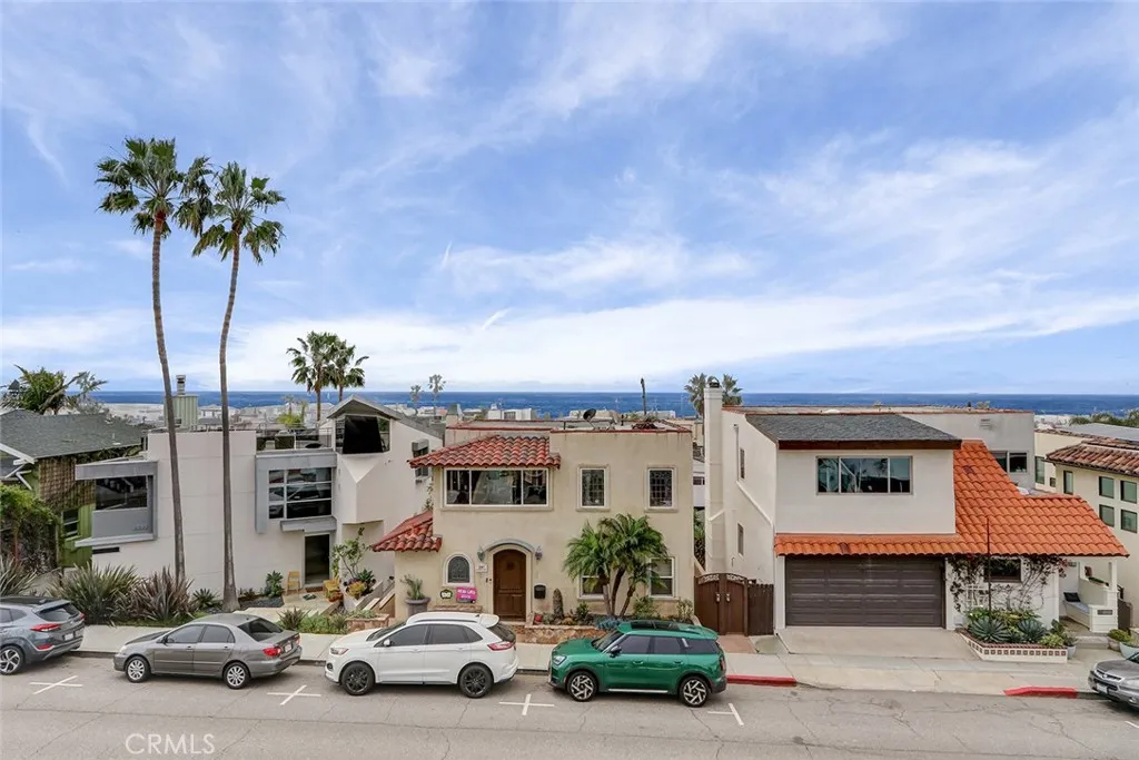 A rare offering in coveted North Hermosa Beach this Ocean View single family home is just two blocks from the sand, in the desirable "between the piers" location. A beautifully appointed coastal residence that captures sweeping ocean views and offers a thoughtfully designed floor plan ideal for refined beachside living. The upper level is designed for both entertaining and everyday enjoyment, featuring an expansive living room with fireplace that opens to a generous ocean view deck perfect for sunset gatherings. The living space flows effortlessly into a beautifully finished kitchen with custom cabinetry, stone countertops, breakfast bar, and an inviting breakfast nook filled with natural light. Also on this level are a tucked away family room and an adjacent home office that could easily serve as a fourth bedroom, with a three quarter bath nearby. The entry level hosts three bedrooms including a serene primary suite with private deck, walk in closet, and a spa inspired bath designed as a peaceful retreat. Two additional bedrooms open through French doors to a private garden courtyard, creating a tranquil outdoor space for guests or quiet relaxation. Additional highlights include a two car garage with extensive storage plus four additional parking spaces, an exceptional convenience this close to the beach. Enjoy sweeping ocean views, a thoughtfully designed floor plan, and one of the South Bays most desirable North Hermosa locations.