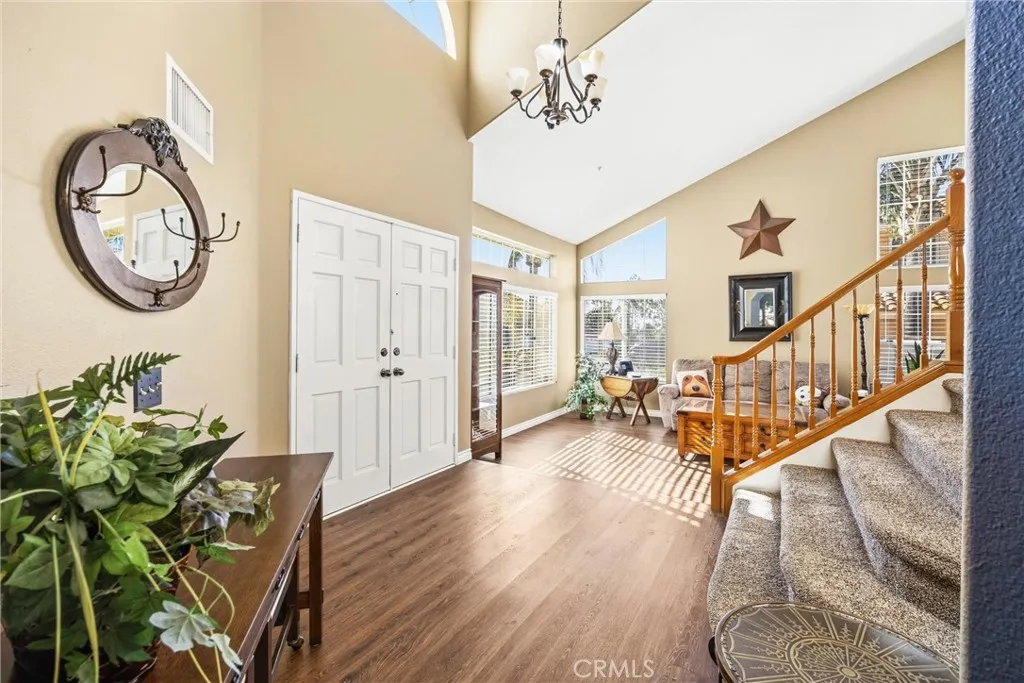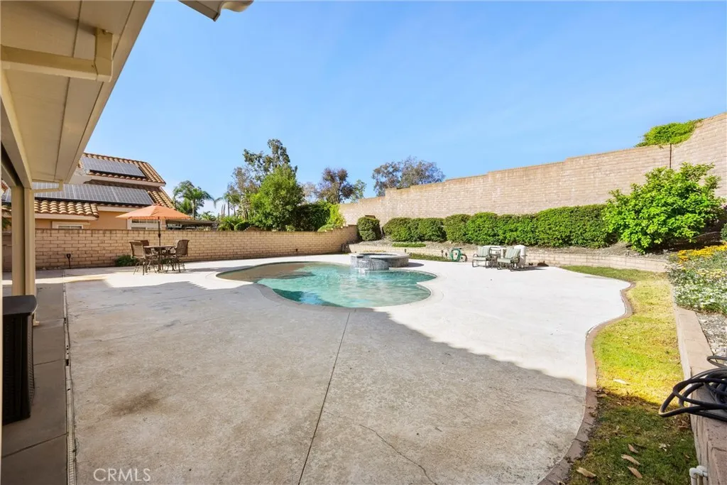 Stunning, move-in ready home!! Situated in a well-established neighborhood, this 4-bedroom, 3-bath pool home offers a spacious and practical floor plan with all bedrooms located upstairs, creating a comfortable separation between living and private spaces. Stepping inside the house you are greeted with 2 story-ceilings and an abundance of natural light. You'll notice the clean, updated feel with LVP flooring running throughout the home. The main living areas provide plenty of space for everyday living and entertaining with a layout that flows easily from room to room. Whether you're hosting gatherings or enjoying a quiet night in , the home offers flexibility to fit your lifestyle. The kitchen has been updated with quartz counter tops and stainless steel appliances and the kitchen nook area has been expanded from the original floorplan and features french doors leading to the impressive backyard! Step outside to an extra large, private backyard that truly sets this property apart from the rest! Designed for year-round enjoyment, the outdoor space features a large covered patio with built-in recessed lights, pool and spa, along with ample room for lounging, dining and relaxation. The privacy and the size of the backyard is truly impressive, did I mention the 5 lychee trees? How about the lemon, grapefruit, or guava trees?! Upstairs you will find the primary suite and 3 additional bedroooms. The primary suite is spacious with lots of natural light and a vaulted ceiling. The primary bathroom has been thoughtfully updated with custom tile work, shiplap siding on the wall, and d