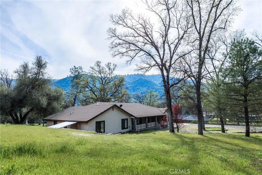 Welcome to 45344 S Oakview Dr in the desirable Hillview Estates perfectly situated just off Highway 49 within the city of Oakhurst. Set on just under an acre, this truly custom property offers the ideal blend of comfort, functionality, and mountain lifestyle living only 35 minutes to Yosemite National Park and less than 20 minutes to Bass Lake. This thoughtfully designed home features 3 spacious bedrooms, including two with impressive custom, oversized closets, and 3 bathrooms. Throughout the home, you'll find true craftsmanship with custom built-in shelving in the den/study, living room, kitchen, formal dining room, bedrooms, and even the pantry creating both beauty and exceptional storage. The layout offers warm and inviting living spaces, complemented by a large attic with walk-in height for added storage or flexibility. A tankless water heater adds efficiency and modern convenience. Step outside and enjoy the expansive outdoor living areas, including both front and back raised concrete porches fully covered for year-round enjoyment. The backyard is designed for entertaining with a private patio featuring an outdoor kitchen and spa, perfect for relaxing or hosting gatherings. Additional highlights include a detached shop with a separate interior room ideal for an office, studio, or extra storage, along with an RV carport for all your recreational needs. With its custom features, usable acreage, and prime location near some of California's most sought-after destinations, this property is a rare opportunity to own a one-of-a-kind home in the heart of Oakhurst.